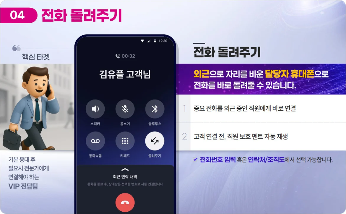 이제 어디서든 장소에 구애받지 않고 전화를 ‘받는 것’에서 ‘관리하는 것’으로 바꿔 업무 효율과 매출을 높이세요